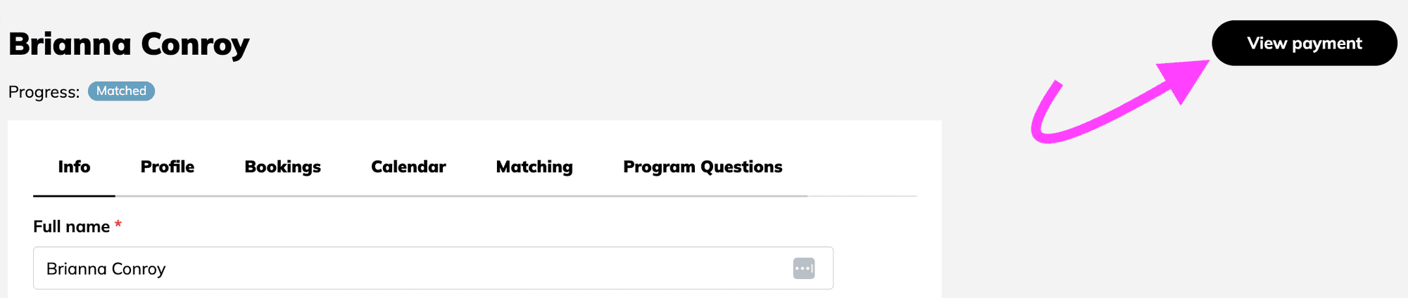 1. Accédez à l'onglet Membres de votre tableau de bord, localisez le mentoré à facturer dans la liste et cliquez sur « Afficher le paiement ».
