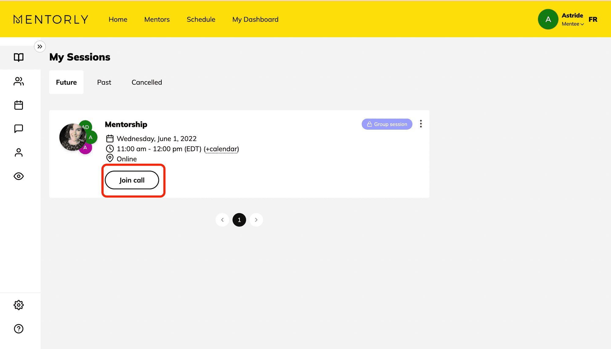 Si la demande de réservation est approuvée, vous verrez la réservation sur votre Page de réservations et vous pourrez rejoindre l'appel vidéo 10 minutes avant votre session.